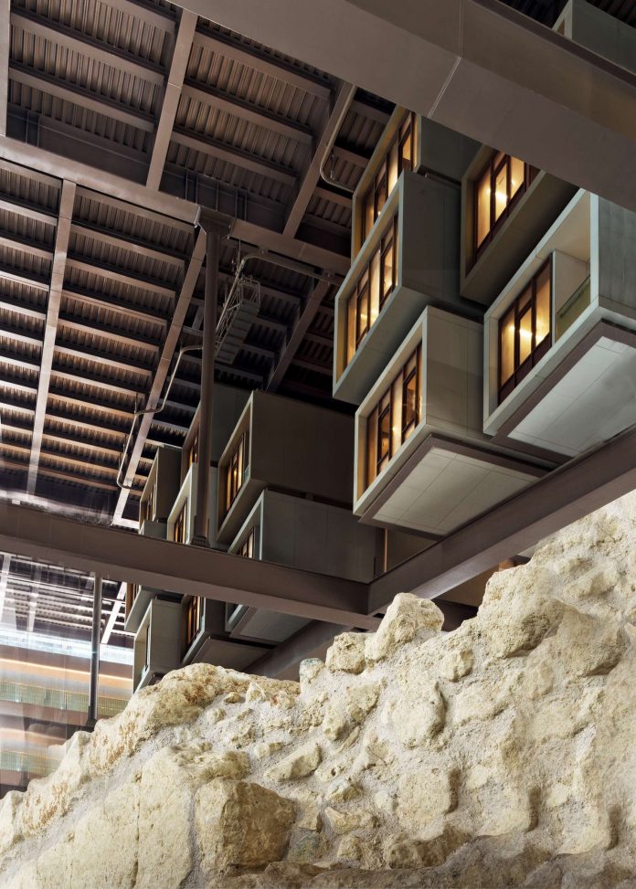 And so a 200-room steel hotel was built around the newly-discovered historic site without disturbing any of the findings, with all rooms, the lobby, bar, and restaurant positioned with a striking view of centuries-old history.